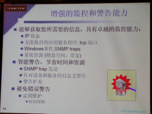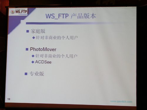 美国Ipswitch公司的朱晓昭(Judy Niewenhous)女士向大家讲解了目前美国Ipswitch公司的主要产品:
