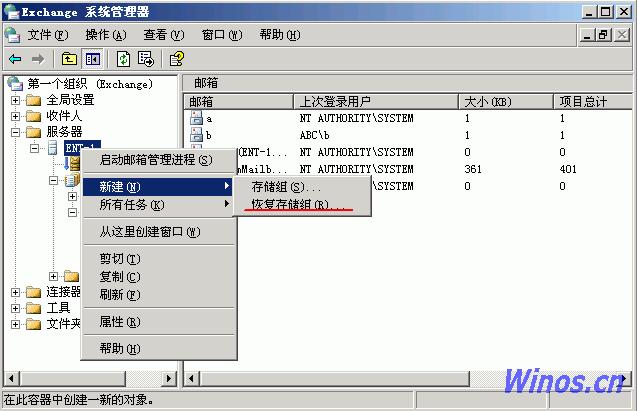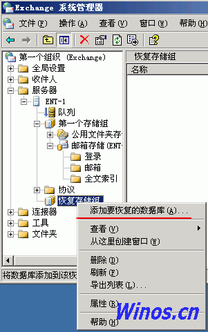 Exchange2003和Exchange2000相比,在邮件的恢复上增加了恢复组。在Ex2000中,邮件直接还原常规存储组中,这样可能会丢失一部分(在上次备份到还原的这段时间的邮件)邮件,Ex2003中保留了这种方式。