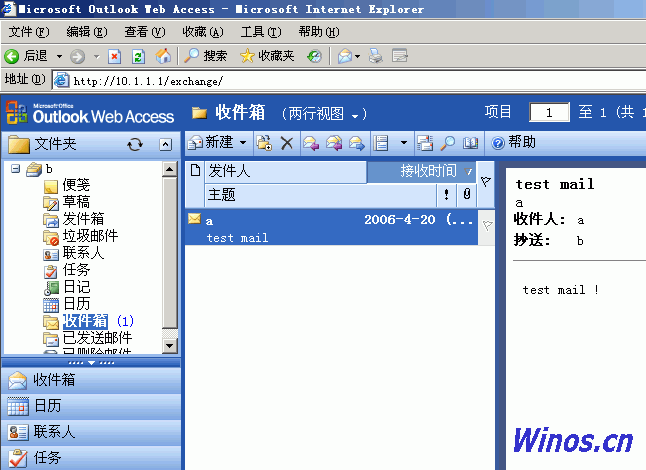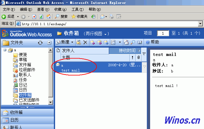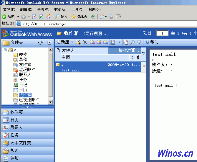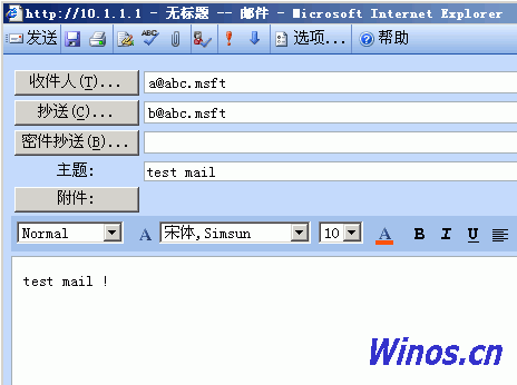 用a账号使用OWA登录Exchange,发送一封邮件给自己,并抄送给b:
