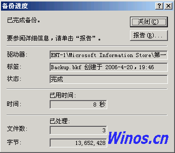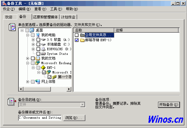 接下来我们对Exchange进行备份。运行NTbackup,对Exchange的邮箱存储作一次常规备份: