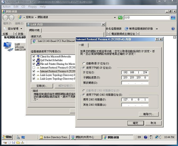 | • | 利用 Windows Server 伺服器所建立之 AD 網域環境 |