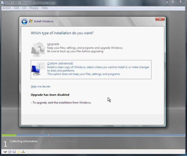 6.因為是新安裝,所以只可以選擇 Custom 這個選項
