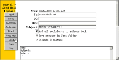〖测试环境〗:NT/2K,IMail6.02,用于作例子的E-mail为santai@aaa.net