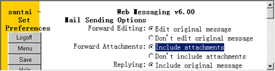 5、默认的,当转发(Forward)邮件时不包括原邮件的附件,如欲改成包括,则在Option中选Preferences(主屏幕),再选中“Include attachments”即可。如下图: