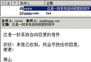③则所有邮件均将被自动回复。Message的第一行同时又是自动回复信件的主题。客户端如下图: