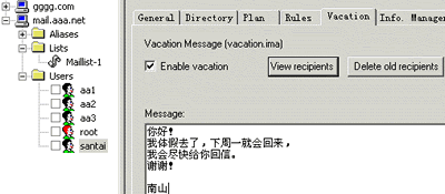 ④自动回复将回复任何一封发来的信;而假期回复则仅当启用了此项服务后,某个信箱第一次发信来时方回复(看已回复的信箱在View recipients处)。