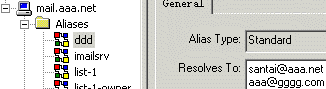 ③此处地址也可是邮件列表名(Lists)或别名(Aliases)。比如填入“Maillist-1@aaa.net”,则发向此信箱的信会转发到邮件列表Maillist-1所包含的所有邮件地址中。