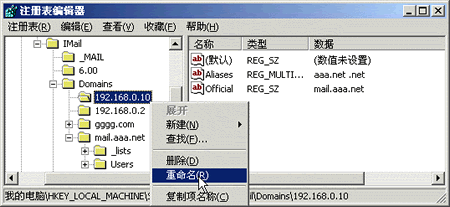 恢复时先将备份的“\imail”整个树将原来的目录覆盖,再进入注册表编辑器,选中“IMail”,然后用“导入注册表文件”将备份的文件导入即可。