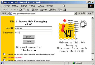 ②http://www.lianhe.com:8383的邮件主页面。如下图: