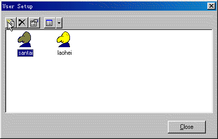 ③增加邮件用户名。在主屏幕中选“Tools→User”,其中,四个图标作用分明是:增加用户;删除用户;用户属性;显示方式(列表/大图标)。选“增加用户”一项,输入相应资料即可。如下图: