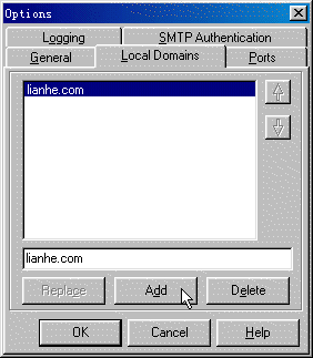 ②增加新的邮件服务器。选“Local Domains”,在下面的空白框内输入新的邮件服务器名,再选“Add”以增加进去。如下图: