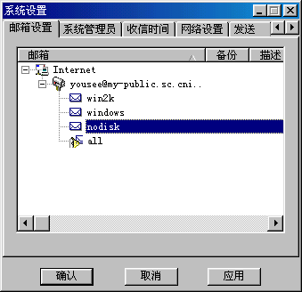 南山(3)此时,选中"邮箱设置"选项,在"Internet"上单击右键,选"添加公共邮箱";再在随后的"公共邮箱"窗口中根据提示,输入目标公共邮箱的"SMTP服务器"地址、"POP3服务器"地址、"POP3帐号"名称、"口令"及完整的"电子邮件地址"等项后再"确认"即可完成公共邮箱的设置。(注意:此公共邮箱可以是Internet上任意合法的E-Mail地址!)如图1所示。