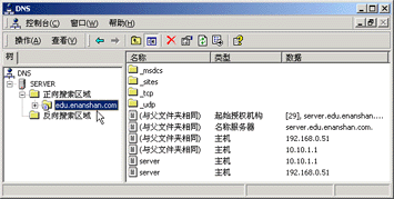 (10)假设用户名为"01",而"Active Directory域名"为"edu.enanshan.com",则此用户信箱建立好之后,它使拥有了一个名为"01@edu.enanshan.com"的E-Mail地址!而它的SMTP服务器和POP服务器地址均为"edu.enanshan.com",它们在升级到域后便已自动在DNS服务器中建立好了,可以直接使用,不再需要去建立DNS映射记录。
