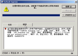 (3)此时应该就至少可以正常接收邮件了!不过发送邮件有可能会出现问题,在其他设置都正常的情况下,此错误提示应该是"由于服务器拒绝接受发件人的电子邮件地址,这封邮件无法发送"等等话语。