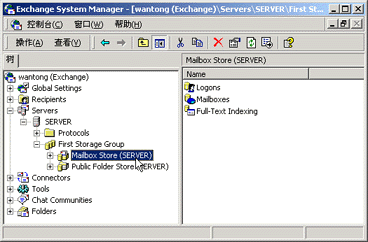 (1)在Exchange中,可以为所有用户的邮箱大小限制(Storage Limits)设置三个"警戒点"。要想作此设置,请先打开"Exchange System Manager"(系统管理器)的窗口。
