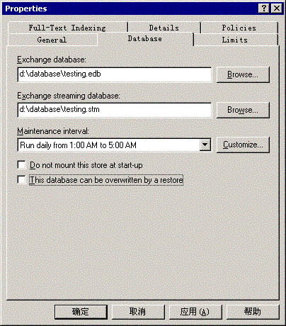 1.新建Mailbox Store为testing数据库文件存放路径到打分区D:
