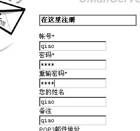 3.测试Webmail在客户端浏览器地址栏里键入http://211.90.191.104:81,出现邮箱管理和申请邮箱的界面,现在单击sign up申请一个邮箱,只填入用户名和密码即可,其它也可不填,如图6。