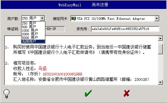 安装过程不作介绍,注册时可根据购买情况实现250、500、1000、2000、无限用户的注册,如图2。