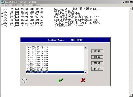 在‘在事件查看’中,我们选取以时间命名的事件文件‘查看’就可以看到如图11所示的Web邮件服务器的活动事件记录。