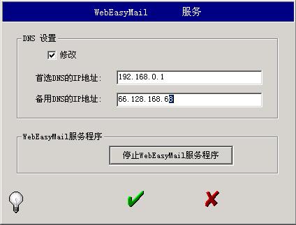 (1)WebEasyMail服务,如图3所示,它的服务包括DNS配置和启动或停止WebEasyMail服务程序。单击设置界面的“服务”,就可以根据我们实际情况设置它的服务了。