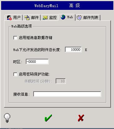 Web高级选项中可以规定附件的大小,我们可以规定附件总长度为5120K(5M)或更大。并且可以启动密码保护功能,设置休眠时间为10分钟。
