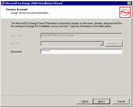 您必須執行下列步驟來準備用於 Exchange 2000 的 Active Directory 資料結構。但於部分狀況下,部執行這些步驟也可以安裝 Exchange 2000。然而,為簡化安裝程序及提高成功率,不管您的 Exchange 5.5 設定為合,請一律執行下列步驟。您僅需為 Windows 2000 型態組織執行一次這個程序,不管 Active Directory forest 中的網域個數為何。