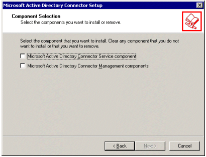 於元件選取畫面中,選取Microsoft Active Directory Connector Service 元件。大多數的管理者同時選擇兩個勾選框以安裝 ADC 及其管理元件。當您做完選擇以後,按一下下一步。/FONT>