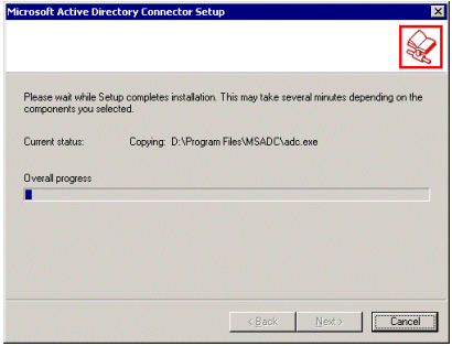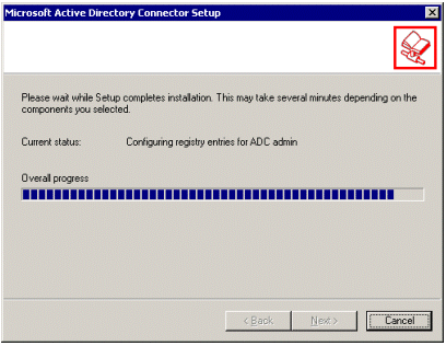 Active Directory 資料結構修改完成後,即會進行登錄項目的修改動作,以便讓系統執行 ADC 管理工具,並且複製其他檔案。