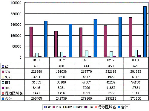 以下是CNNIC在2003年1月公布的www站点数据汇总如下图: