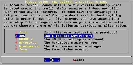 我习惯是用KDE,就选它吧,回车后,会出现让你选择用什么媒介安装,当然选1.CDROM来安装了。