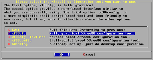 进去看看,里面是XFree86一些工具,选择2.xf86cfg,就可以进入一个图像界面的配置环境