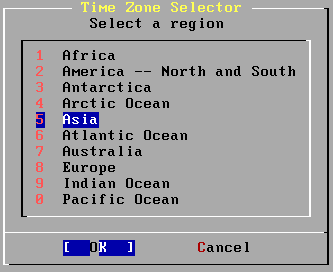 既然不是UTC时间,那系统就会让你自己选择,选择大区域,当然是亚洲Asia