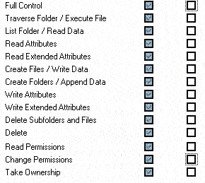 除此之外,NTFS还有一些特殊权限,图1显示了这些特殊权限的名称。