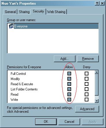 NTFS文件是具有最高权限的,例如用户A对一个文件有读、写的权限,而A对于这个文件所在的文件夹只有读权限,但是最终,A对这个文件,还是拥有读、写的权限。允许和拒绝: