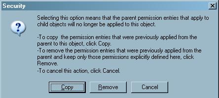 在NTFS分区中,权限是可以继承的,通常情况下,文件夹中的文件和子文件夹是要继承父文件夹的权限的。如果文件夹中的文件和子文件夹继承了父文件夹的权限,在查询子文件夹权限的时候,继承下来的项的权限设置以灰色显示,并不能更改(如图2)。