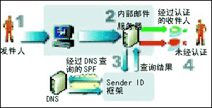 SenderID抓住“漏网之鱼” 所谓SenderID技术,是指SMTP通信过程中对邮件来源进行检查的一种技术,主要归类于连接控制型技术的DNS信息检查类。其基本的工作流程如下: