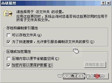 因为一些重要的私有文件,我们不希望让别人访问或者打开,上面的权限设置就很难满足要求了,为了实现这一个目的,我们就需要特定的私有文件进行加密。Windows2003给我们提供了一种廉价安全的加密方式,那就是efs加密系统,它只支持NTFS文件系统,是基于公众密钥的,加密的时候自动会生成一个加密密钥,它本身还可以扩展的加密算法,所以比较安全。还有一点就是用它加密解密文件或者文件夹非常的容易,只要在属性里选一下就可以了,如图12。