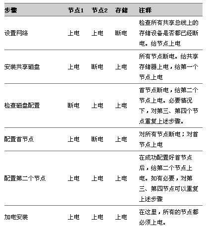 注:在这一部分,要对所有共享存储设备断电,然后对所有节点上电。在至少有一个节点安装好群集服务,并保持在线之前,不要同时让多个节点同时访问共享存储设备。