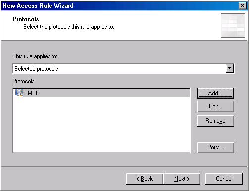 2004防火墙必须配置为允许从本地主机网络访问到外部网络,以便防火墙能转发SMTP消息到Internet上的SMTP服务器上。注意,这里是不允许匿名的SMTP中继,匿名的SMTP中继会使垃圾邮件通过你的SMTP服务器发送出去,从而导致额外的网络带宽和开销,更糟的是可能被反垃圾邮件联盟列上黑名单。