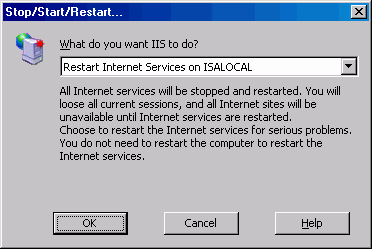 12.Stop/Start/Restart:->Restart Internet Services on servername->OK