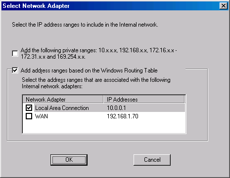 2004安装单网卡,但你随即失去了防火墙的许多功能,因为ISA 2004防火墙软件认为你只想让防火墙运行在Web代理模式。相反,当你安装了loopback适配器后,防火墙软件就认为它是一个真实的接口可以完全执行应用层检测的任务。