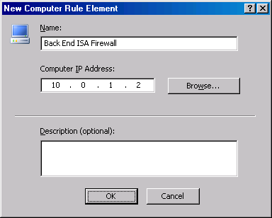 在此,我们已经在背端ISA防火墙上配置好了IP地址和安装好了ISA防火墙软件,执行以下步骤来建立访问规则: