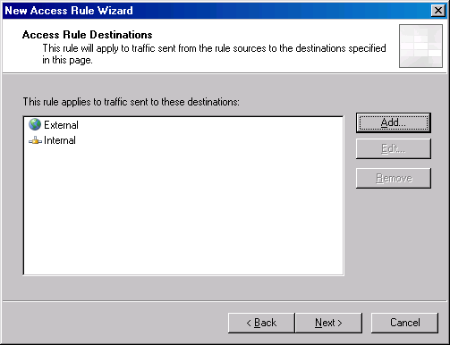 注意,这条规则只允许背端ISA防火墙的外部接口发起的通往外部网络的所有通信,并没有允许DMZ网段的其他主机访问Internet。