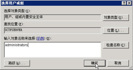 在弹出的选择用户和组页,输入administrators,我没有输入计算机名,默认即为ISA本机上的administrators组;点击确定;