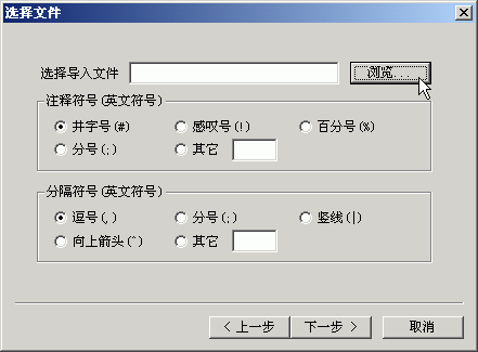 1.在文本文件内容中的注释符号“#”和分隔符号“,”不固定,可以在导入的时候选择或自定义。