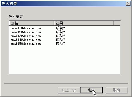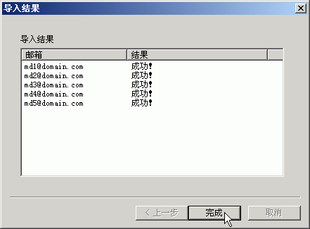 4.导入邮箱地址的域名必须和您在Winmail Server中设置的主域域名一致。