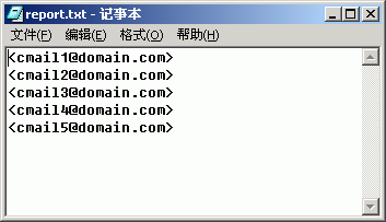 1.CMailServer 5.2可选择性生成用户信息报表,导出的文件格式支持htm,ini,csv和txt四种。由于不支持密码导出,所以我们只需导出邮件地址即可,即CmailServer 5.2信息报表中的“E-mail热连接”,生成文件格式选择为txt。