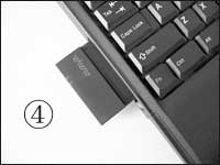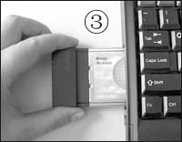 图3 平行于桌面将无线网卡插入PCMCIA卡槽,注意一定要水平插入。