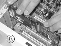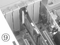 图8 将PCI转接卡接头与插槽对准,双手垂直推入,直到完全插紧。