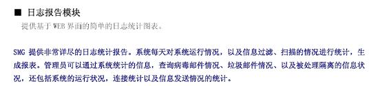 博威特网络公司销售负责人指出梭子鱼垃圾邮件防火墙产品不仅提供非常详尽的日志统计报告,而且能将系统日志存储在系统日志服务器,通过第三方软件任意查询邮件日志服务器中的资料。同时梭子鱼提供完善的信息过滤、扫描统计报告,包括病毒邮件、垃圾邮件、隔离统计、每日流量、收件人、发件人等详细报表,并提供可视报表形式,如饼图、柱状图等,用户可以任意设定发送时间等等……。